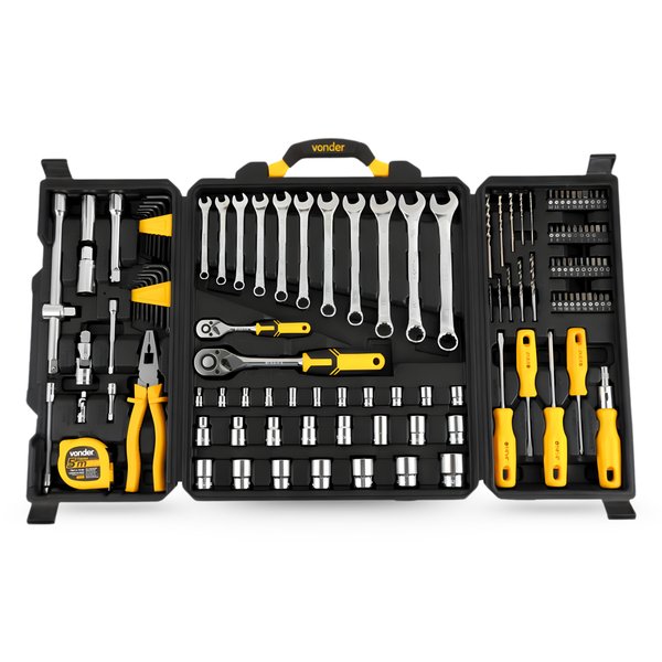 Produzido com o padrão de qualidade VONDER, o kit conta com peças resistentes, encaixes precisos e acabamento de alto nível. Acompanha maleta rígida original, facilitando o transporte, a organização e o armazenamento das ferramentas, mantendo tudo sempre protegido e acessível.